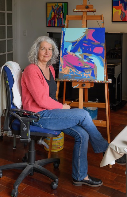 Au cours de ma carrière et de mes déménagements successifs, je découvre au fil de mes rencontres l’aquarelle, le pastel, l’huile et l’acrylique. Représenter le réel fait partie de mes premiers choix mais la découverte du couteau me dirige vers l’abstrait avec cette envie de d’explorer le geste et la couleur. Je goûte à la liberté, il n’y a plus d’intermédiaire entre moi et la toile. Je vis pleinement l’instant présent.